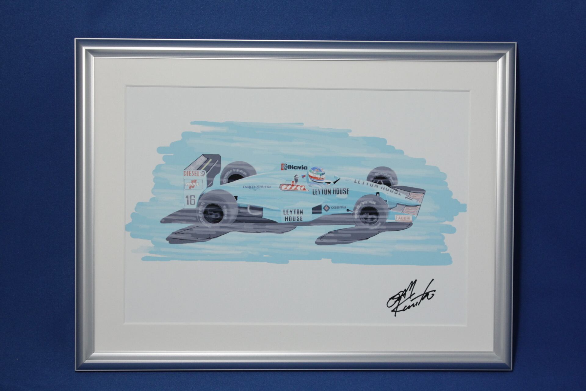 直筆サインを入れ、アルミ製のフレームに入れてあります。